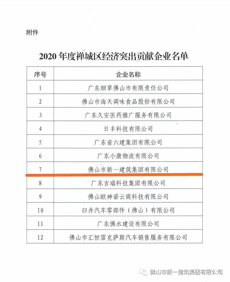 佛山市禪城區(qū)人民政府發(fā)布了“2020年度禪城區(qū)經(jīng)濟突出貢獻企業(yè)”的通報,并公布了“2020年度禪城區(qū)經(jīng)濟突出貢獻企業(yè)名單”。憑借雄厚的實力,突出的經(jīng)濟貢獻,佛山市新一建筑集團有限公司成功上榜,榮獲“2020年度禪城區(qū)經(jīng)濟突出貢獻企業(yè)”稱號!