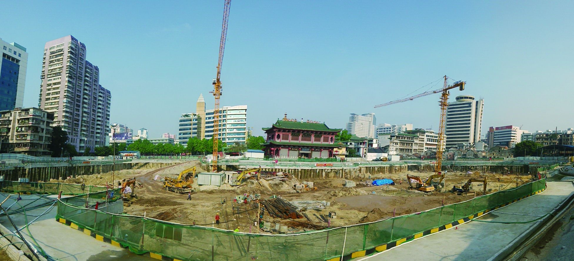仁壽寺基坑支護(hù)工程,佛山重點工程之一,地下室面積14000平方米,基坑最大開挖深度10.6米。該工程采用雙排樁支護(hù)設(shè)計,三軸攪拌止水樁609套、支護(hù)樁654條,出土超13萬立方米。